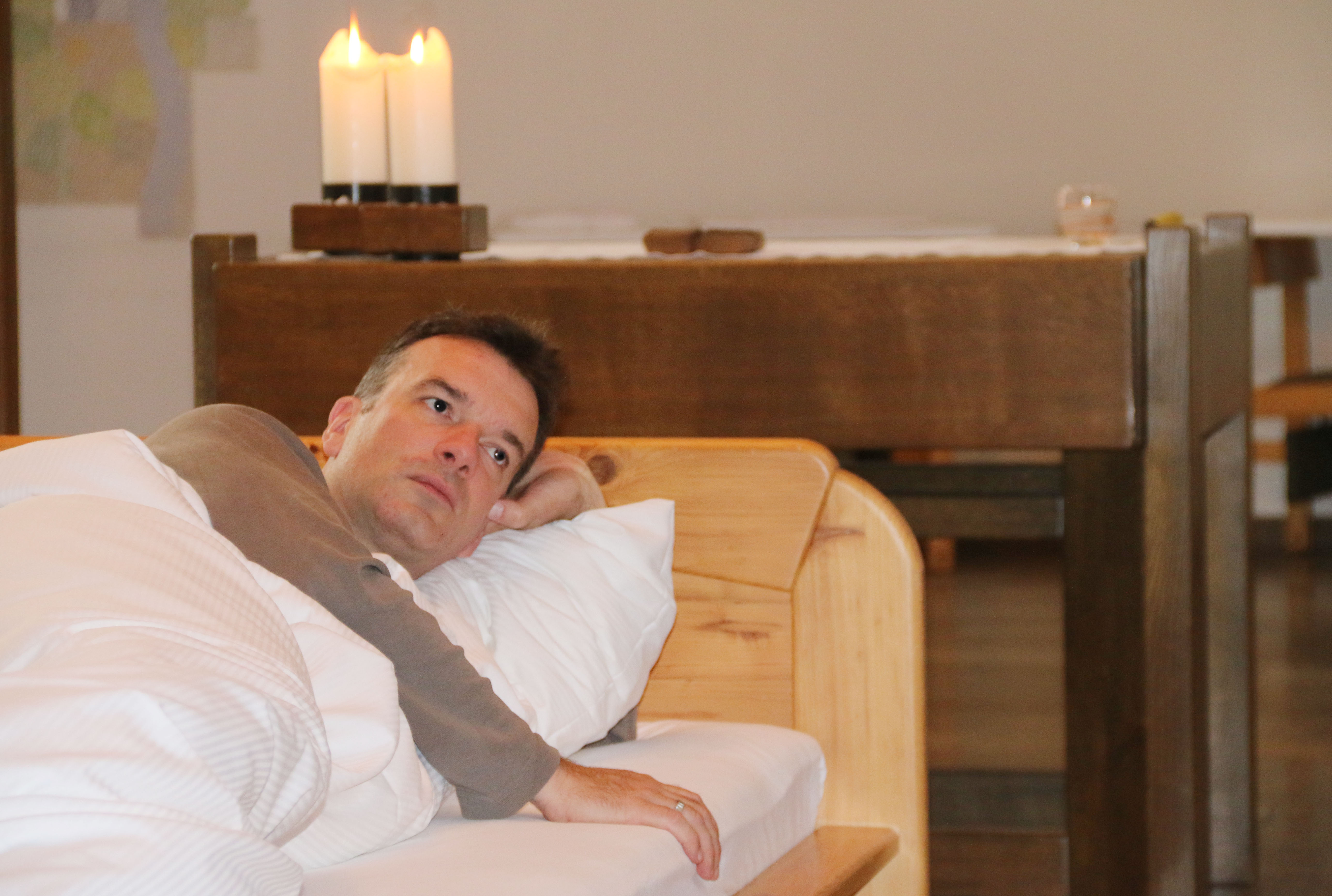 Einen Tag im Bett verbringen. In der Kirche.